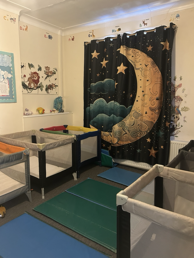 We also have a separate sleep room to provide a peaceful and comfortable space for rest. This area is equipped with CCTV, video/audio monitoring, high-quality sleep mats and travel cots, helping to ensure that every child remains safe, secure and comfortable while sleeping, and giving parents added reassurance.